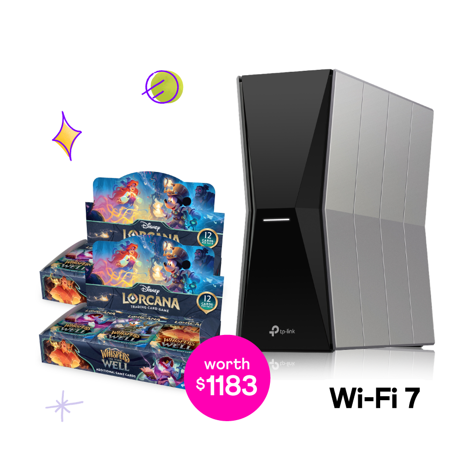 - Disney Lorcana TCG Whispers in the Well Booster (2-Boxes) GAMER 10Gbps + TP-Link Wi-Fi 7 Router