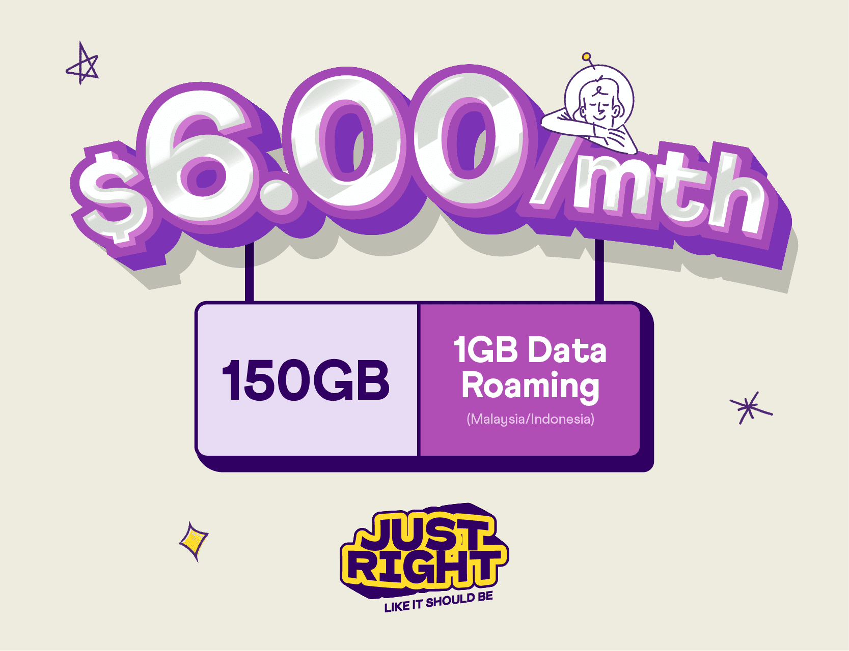 150GB + 1GB Roaming. A plan that's just right